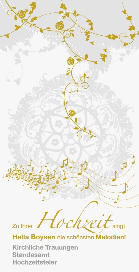 Egal ob kirchliche Trauungen, Standesamt oder Hochzeitsfeier. Zu Ihrer Hochzeit singt Hella Boysen die schönsten Melodien!